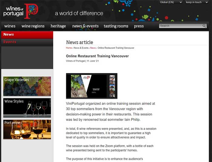 ViniPortugalは、バンクーバーのレストランのトップソムリエ30人を対象としたオンライントレーニングセッションを開催。